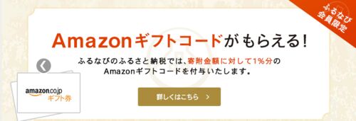 ふるさと納税ポータルサイトの「ふるなび」が寄付金額の1%のAmazonギフトコードを貰えるキャンペーンをしています。 先着何名様とかではなく、必ずもらえるキャンペーンなのでお勧めです。 公式ページはこちら furunavi.jp 対象条件も、まったく厳しくなく…