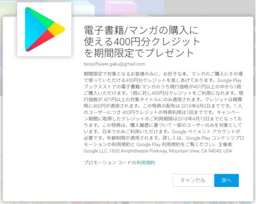 Google Playを覗いたら、お得なキャンペーンをやっていたのでご紹介です。 只、購入履歴にもとずいて一部のユーザのみと書いてあるので、対象者かどうかは実際にアクセスしないとわかりません。 期限は4月2日まででまだまだ余裕はありますが、忘れやすいの…