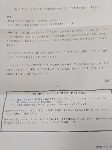 ブログにするほどの事でもないのですが、以前のブログの記事で「みずほプレミアムクラブ提携サービス」を申し込んだ記事を書きましたが、無事提携終了し、少し前になりますが、通知がきました。 blog.omosiroki.com 2月9日(金)より開始との事ですが、暴…