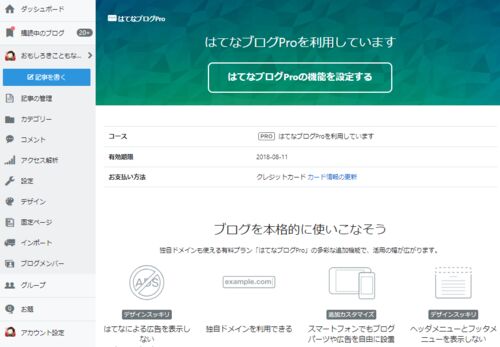 ドメインを取ったので、次にブログをはてなブログProにしてみました。 はてなブログProとは、独自ドメイン設定以外は、広告消すぐらいしか機能ないかと思ってましたが、他にも色々機能がありました。 はてなブログPro - はてなブログ ブログを10個まで作成…